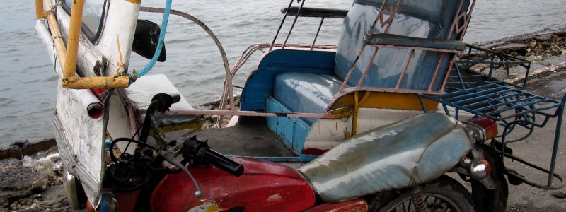 eins der typischen Filipino-Motorräder mit Beiwagen, in das eigentlich nur ein europäisches Kind passt - wir saßen dort zu zweit drin.